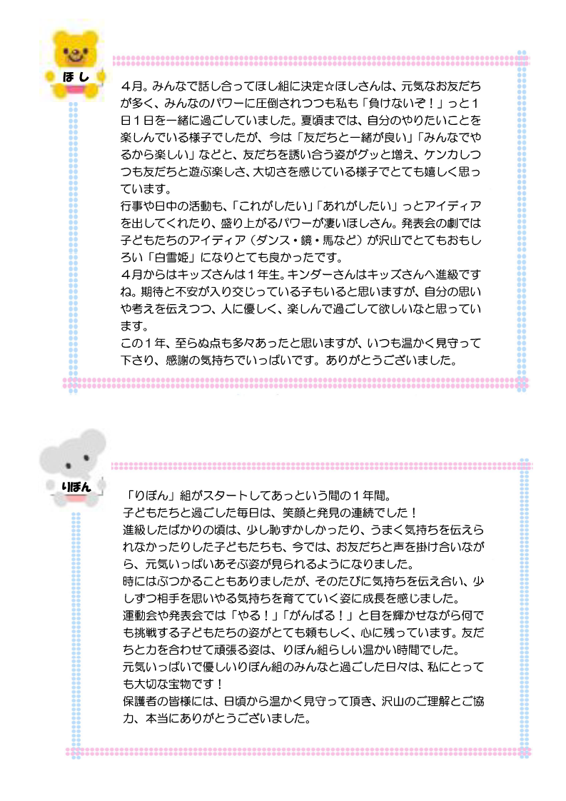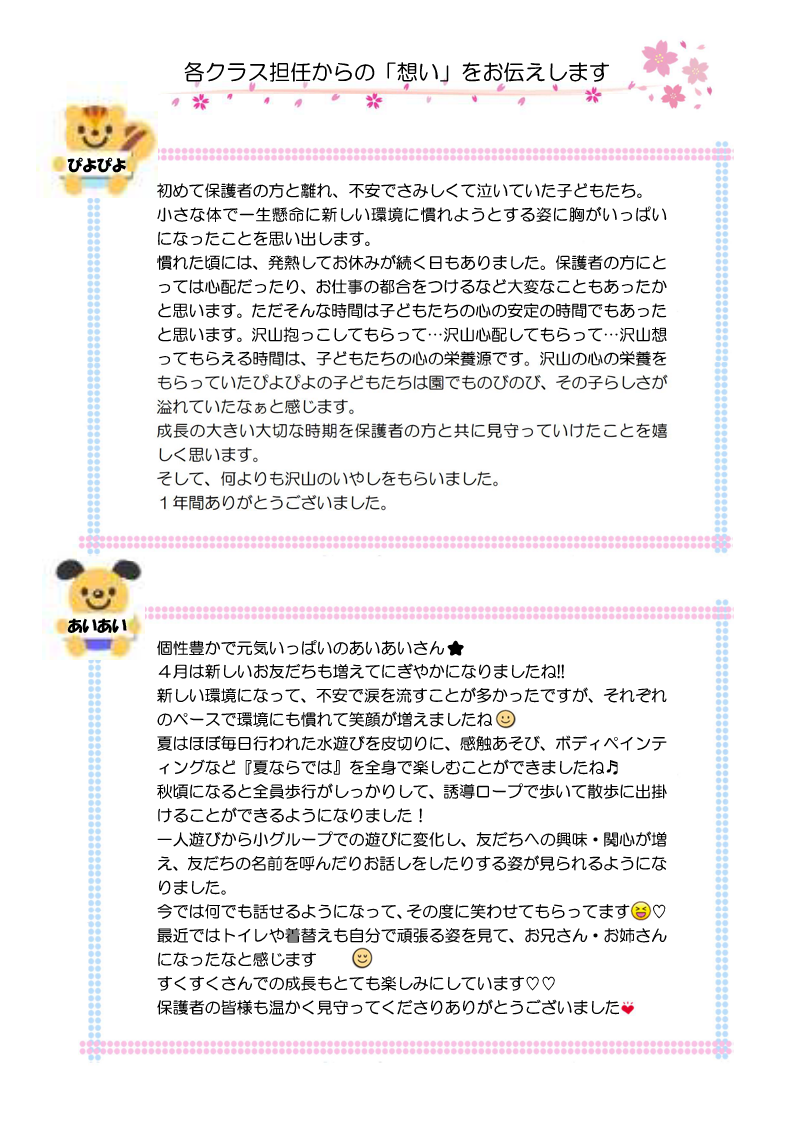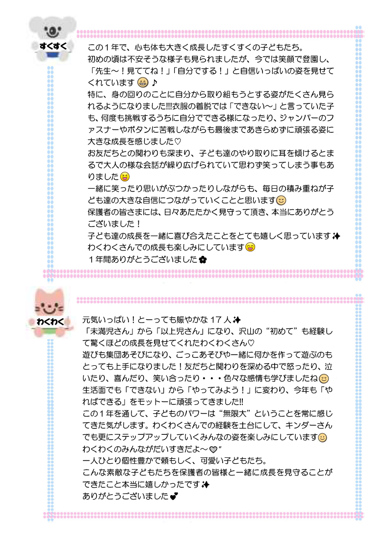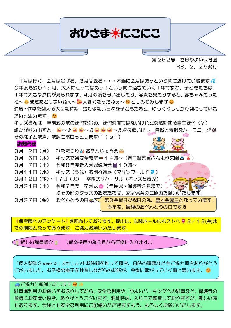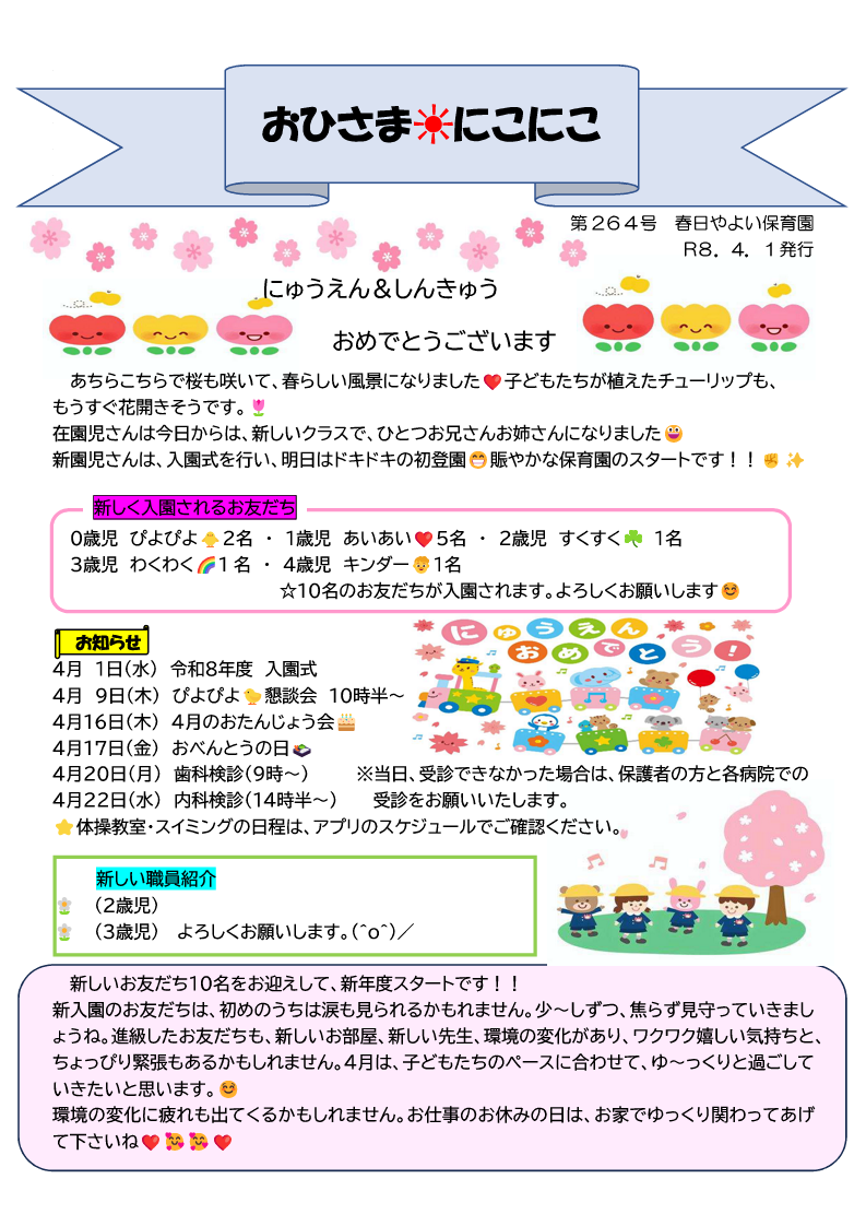 春日やよい保育園では、定期的に保育園通信を発行しています。